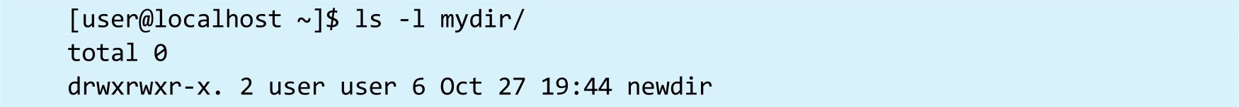 创建多级目录,使用-p选项在当前目录下创建两级目录mydir/newdir。