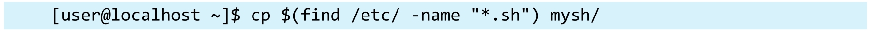 也可以用另外一种方式实现以上示例的功能,命令如下,其中$(find /etc/ -name "*.sh")会将find的结果转换成cp命令的输入参数。