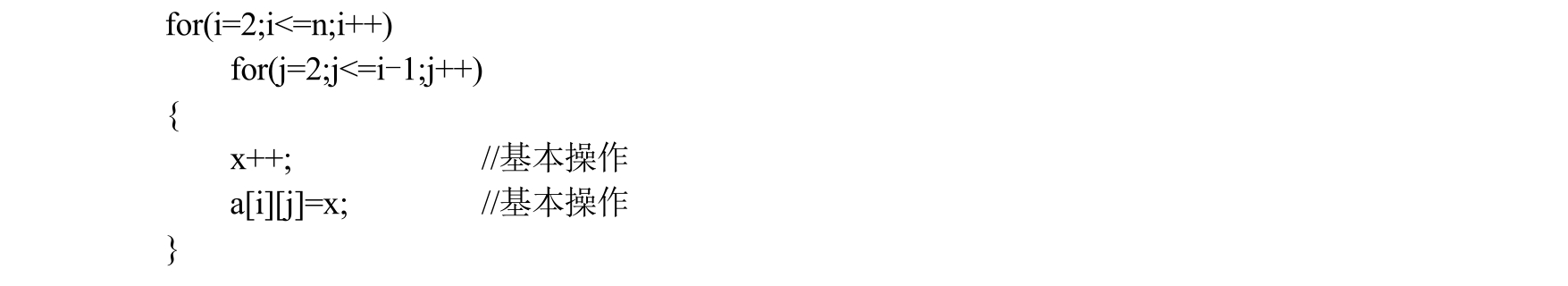 一般情况下,算法的时间复杂度只需要考虑算法中的基本操作,即算法中最深层循环体内的操作。