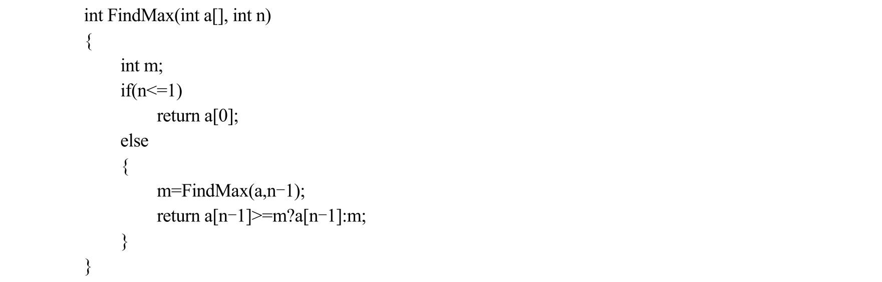 设FindMax(a,n)占用的临时空间为S(n),由以上算法可得以下占用临时空间的递推式。