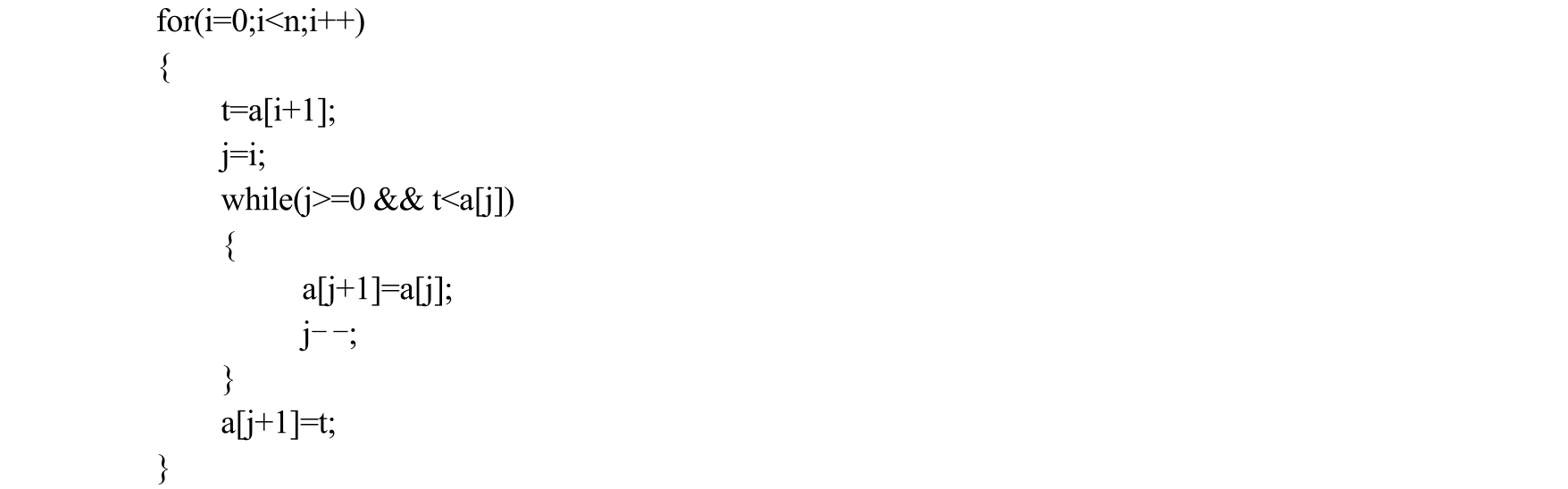 【例1.5】 以下是一个简单的插入排序算法,分析算法的空间复杂度。