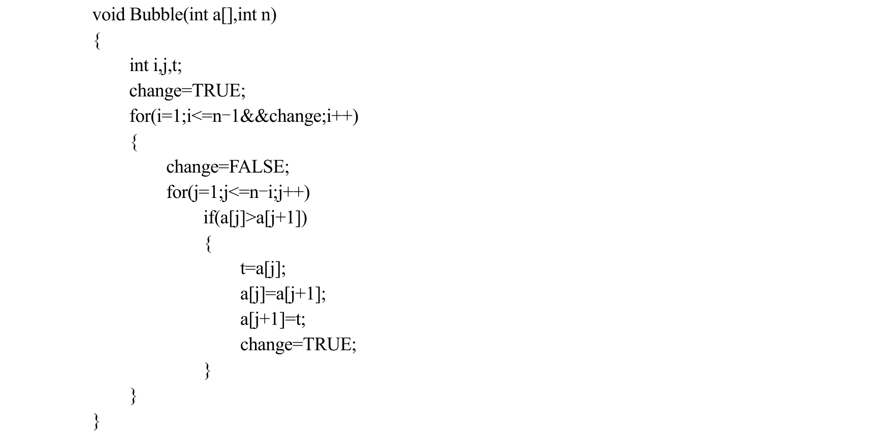 在有些情况下,算法的基本操作的重复执行次数还依赖于输入的数据集。例如,在以下的冒泡排序算法中: