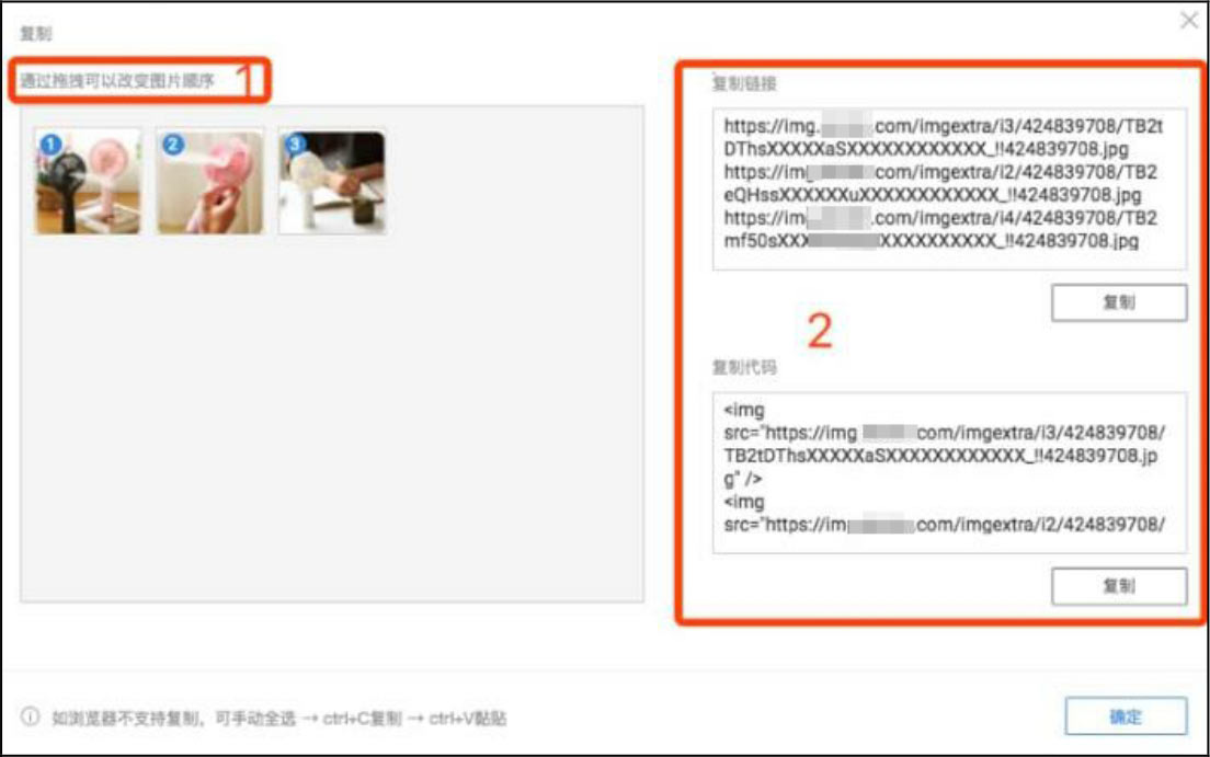 (2)批量复制图片:多图复制可以设置复制URL和代码的顺序,仅需拖曳即可。同样,多图复制也提供了复制超链接和复制代码的能力,如图3-10所示。