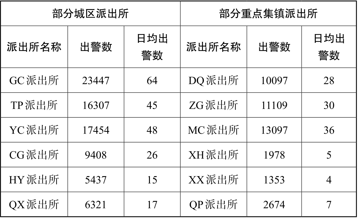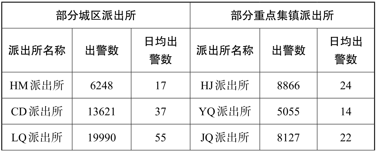 表1-1 浙江某市部分派出所2011年接处警数量(次)