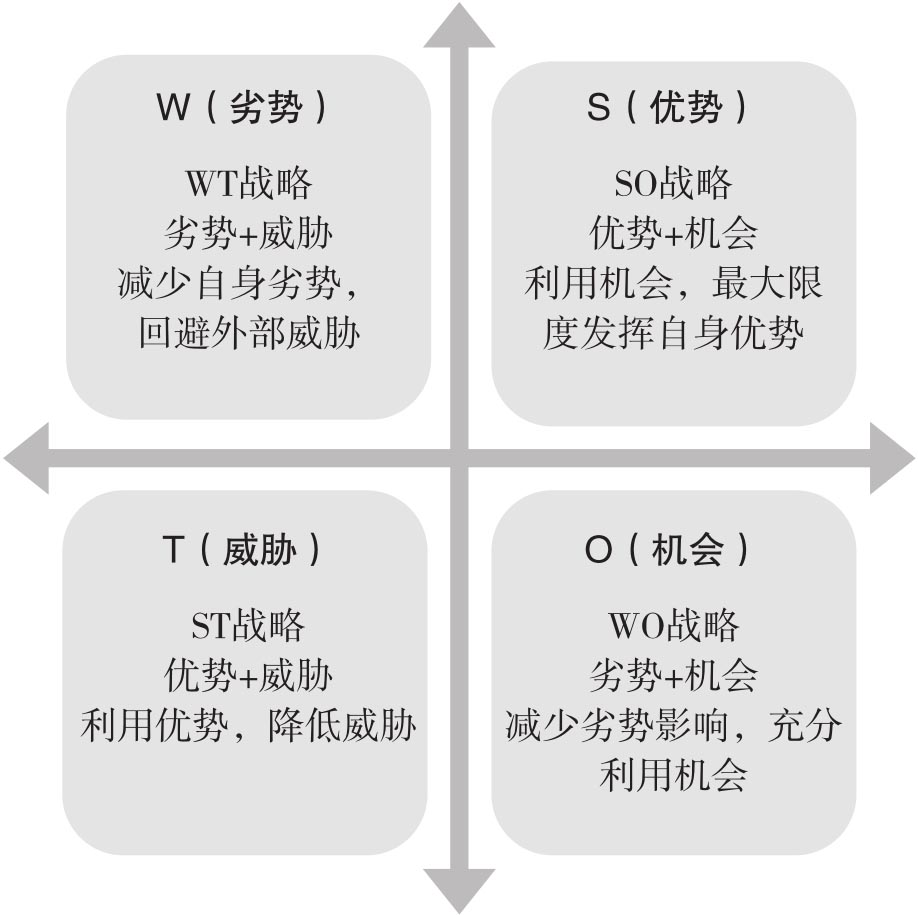 制订计划的基本思路是:发挥优势因素,克服弱点因素,利用机会因素,化解威胁因素;考虑过去,立足当前,着眼未来。运用系统分析的综合分析方法,将排列与考虑的各种环境因素相互匹配起来加以组合,得出一系列公司未来发展的可选择对策。
