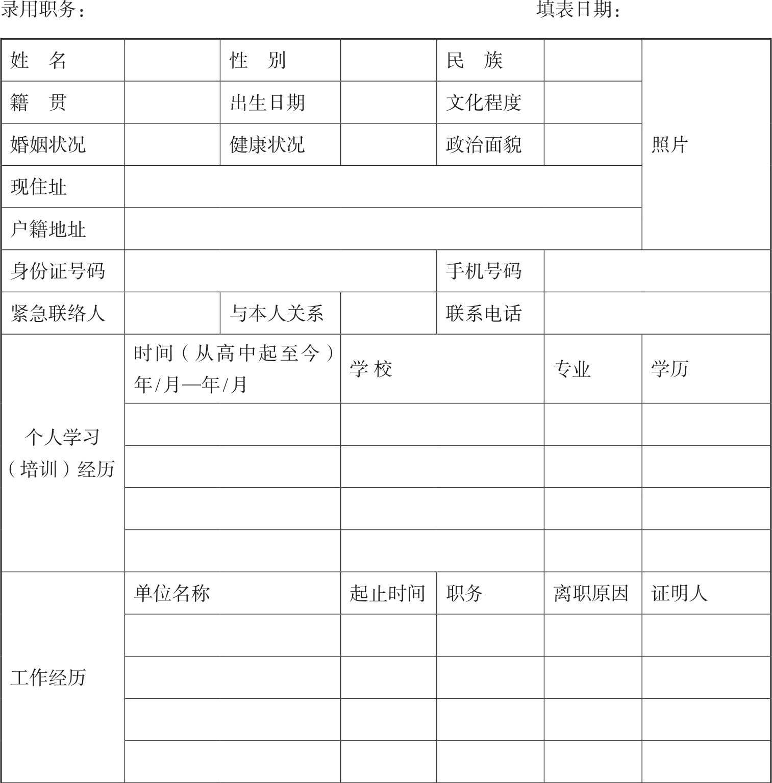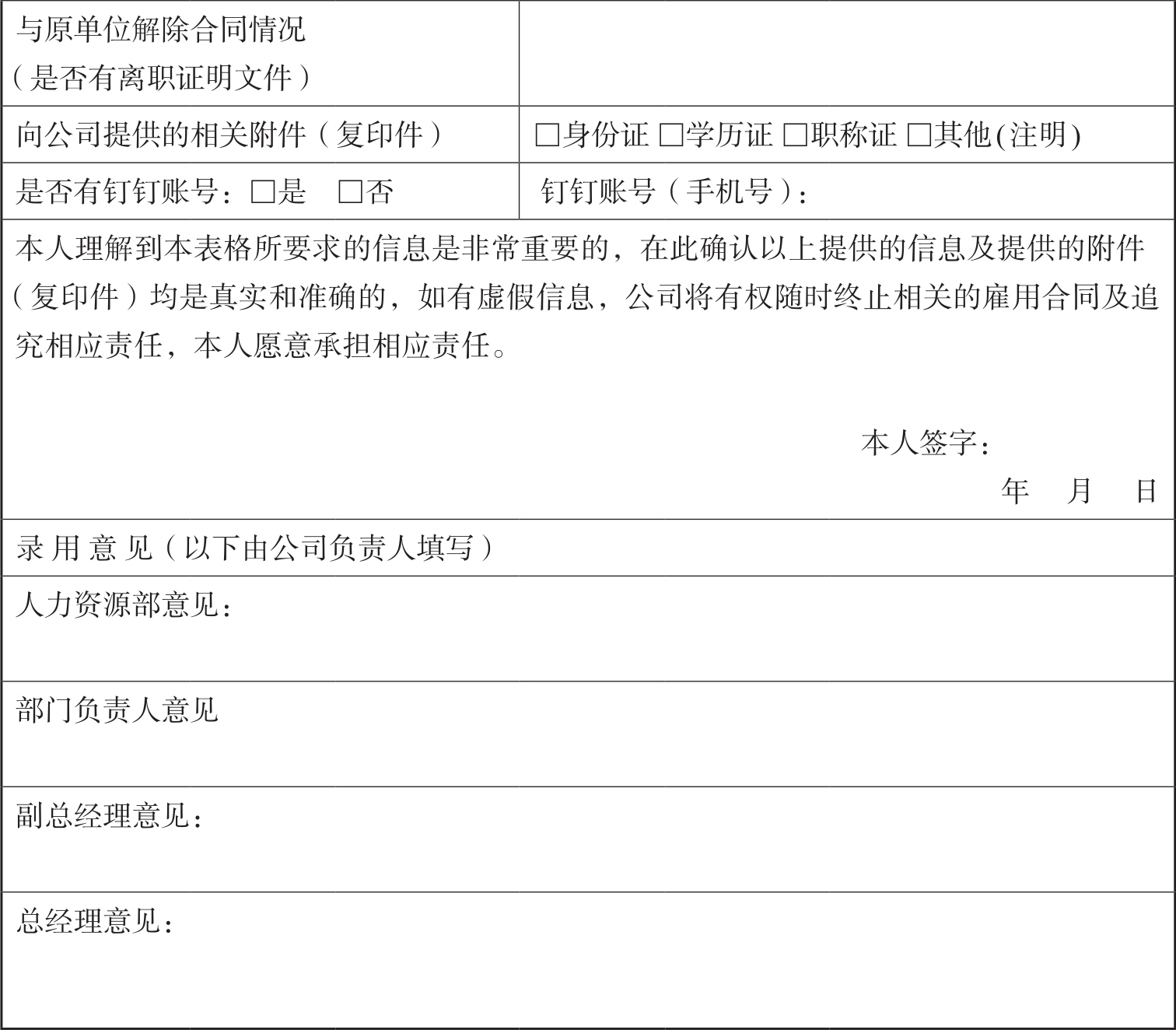 表10-1 员工入职登记表