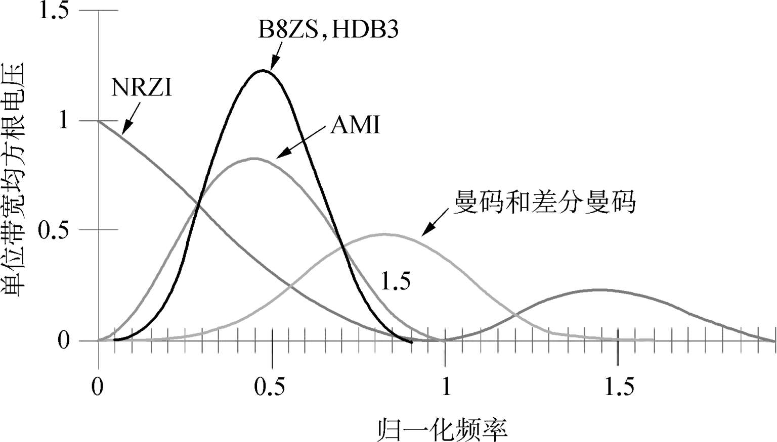 (1)编码信号中不含直流分量,数字信号带宽尽量窄,信号频谱的最高点最好在带宽的中央;