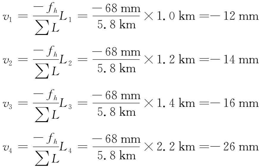 本例中,各测段改正数为