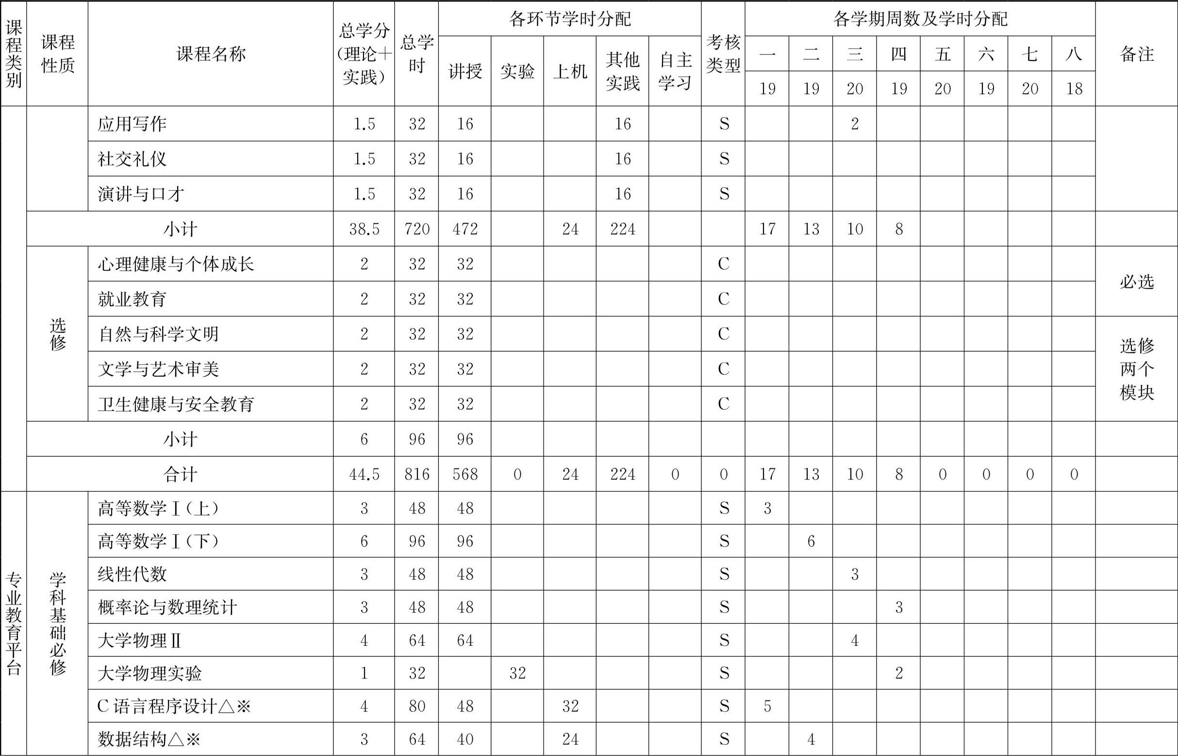 注:1.专业核心课程以“△”标注,学位课程以“※”标注,统一标注在课程名称的后面。