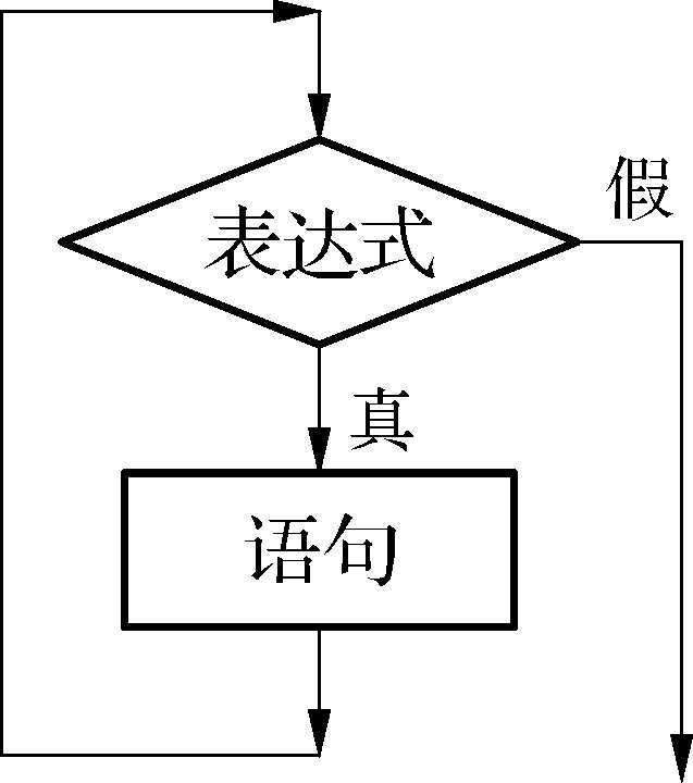 当型循环。如图3.3所示,先执行判断条件,若条件成立则继续执行循环体,执行完循环体再次执行判断条件,若条件还成立继续执行循环体,直到判断条件不成立才终止循环。因为是“当条件满足时执行循环”,即先判断后执行,所以称为当型循环。