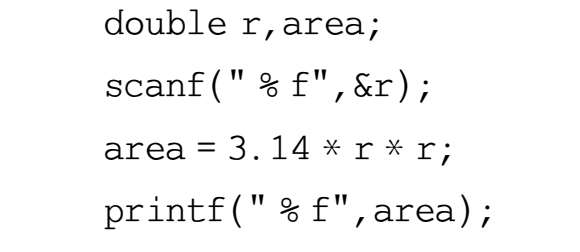 例:计算圆的面积。用标识 r 表示圆的半径, area 表示圆的面积。