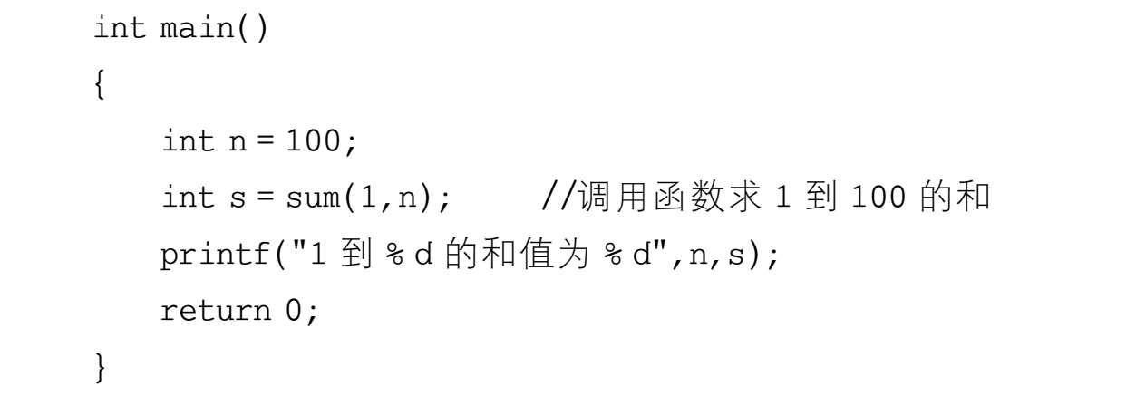 在该例中,有两个函数main和sum函数,在主函数main中调用sum求1到100的和。
