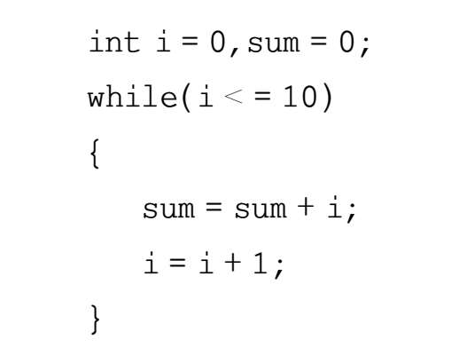 i的值10已经累加到和sum里,将i增加1变成11,即i=i+1
