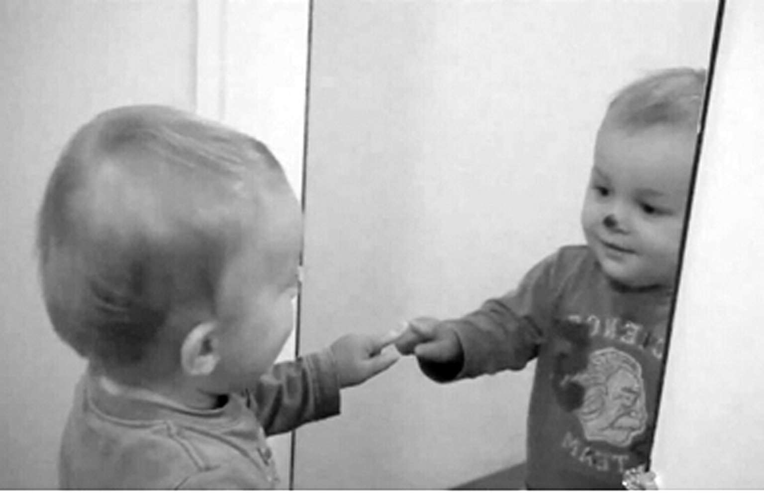 个体在早期是不具备自我意识的,也就是说,个体在早期无法区别自己与外界的事物。最直观的证据就是婴儿会把自己身体的某个部位当作玩具,经常抱着自己的小脚吮吸脚趾。阿姆斯特丹(B.Amsterdam)的运用点红实验证明什么时候婴儿能识别镜中的人是不是自己。实验大致流程为: