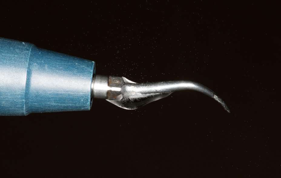 超声洁治器上残留的水滴