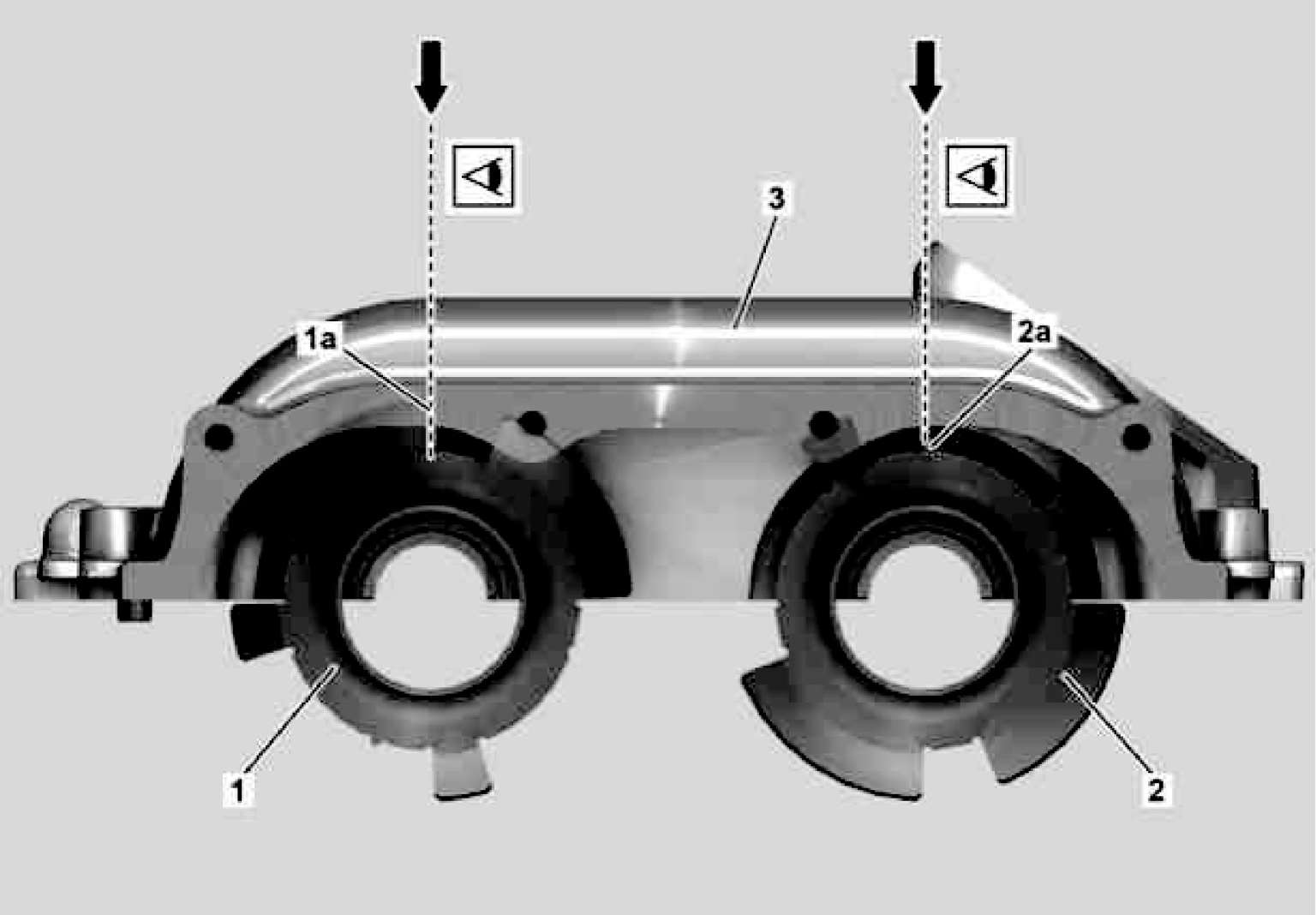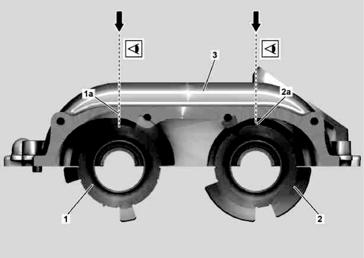 (4)松开压紧工具(如图1-18中01a、01b)处的螺钉/螺栓(如图1-18中04),直至可以转动凸轮轴,压紧工具(如图1-18中01a、01b)安装在气缸盖上。