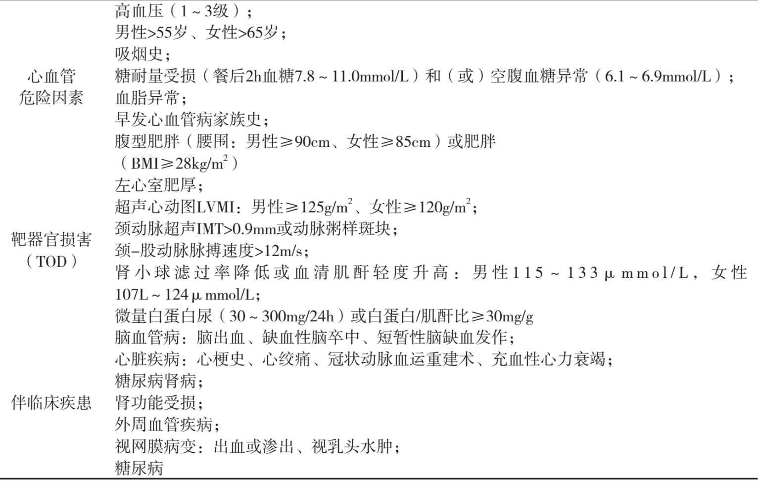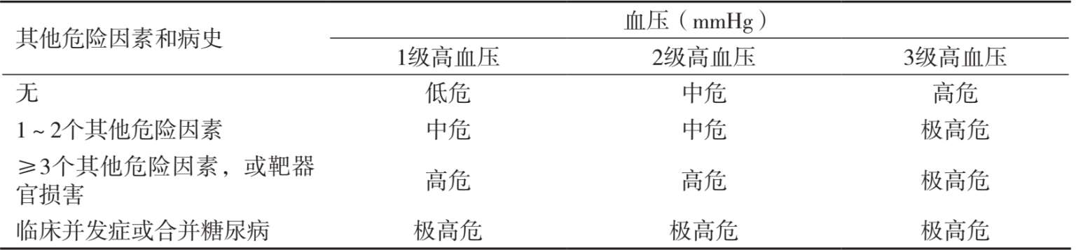 高血压患者的诊断和治疗不能只根据血压水平,必须对患者进行心血管风险的评估并分层。高血压患者按心血管风险水平分为低危、中危、高危和极高危四个层次。