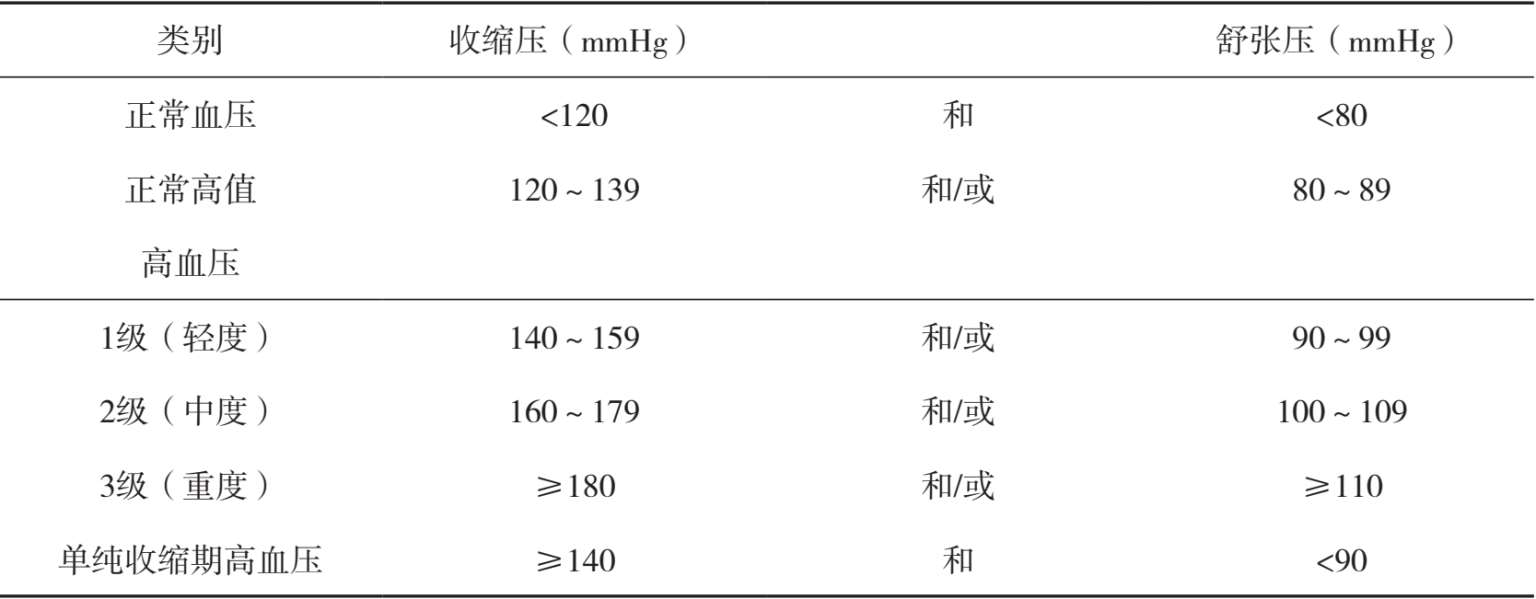 注:当收缩压和舒张压分属不同分级时以较高的级别作为标准。