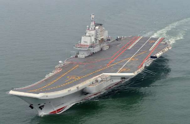 “辽宁号”航空母舰是中国人民解放军海军第一艘可以搭载固定翼飞机的航空母舰。