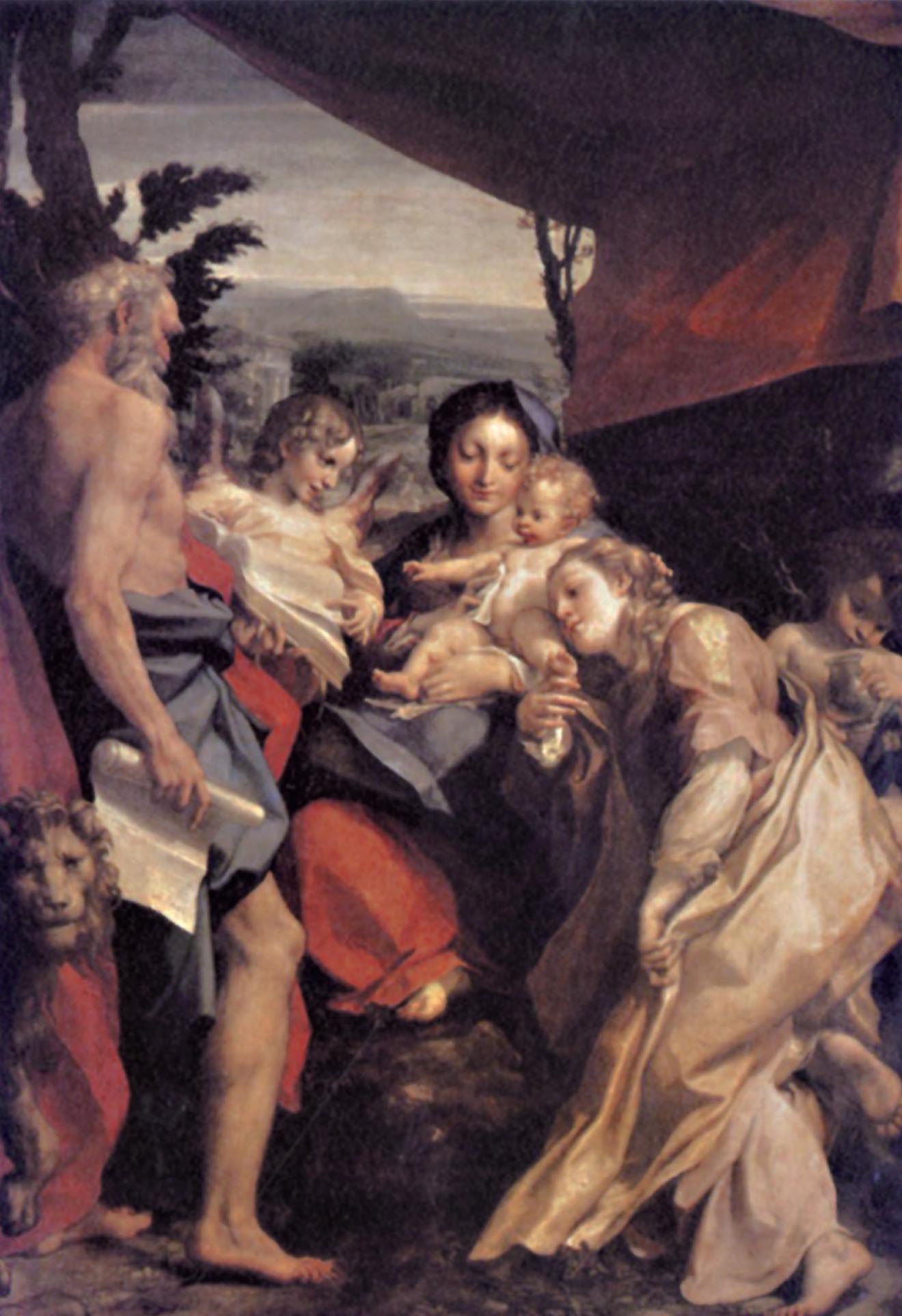 35.高雷琪奥:《圣母与圣·奚罗姆》。——图26至35属于意大利文艺复兴盛期