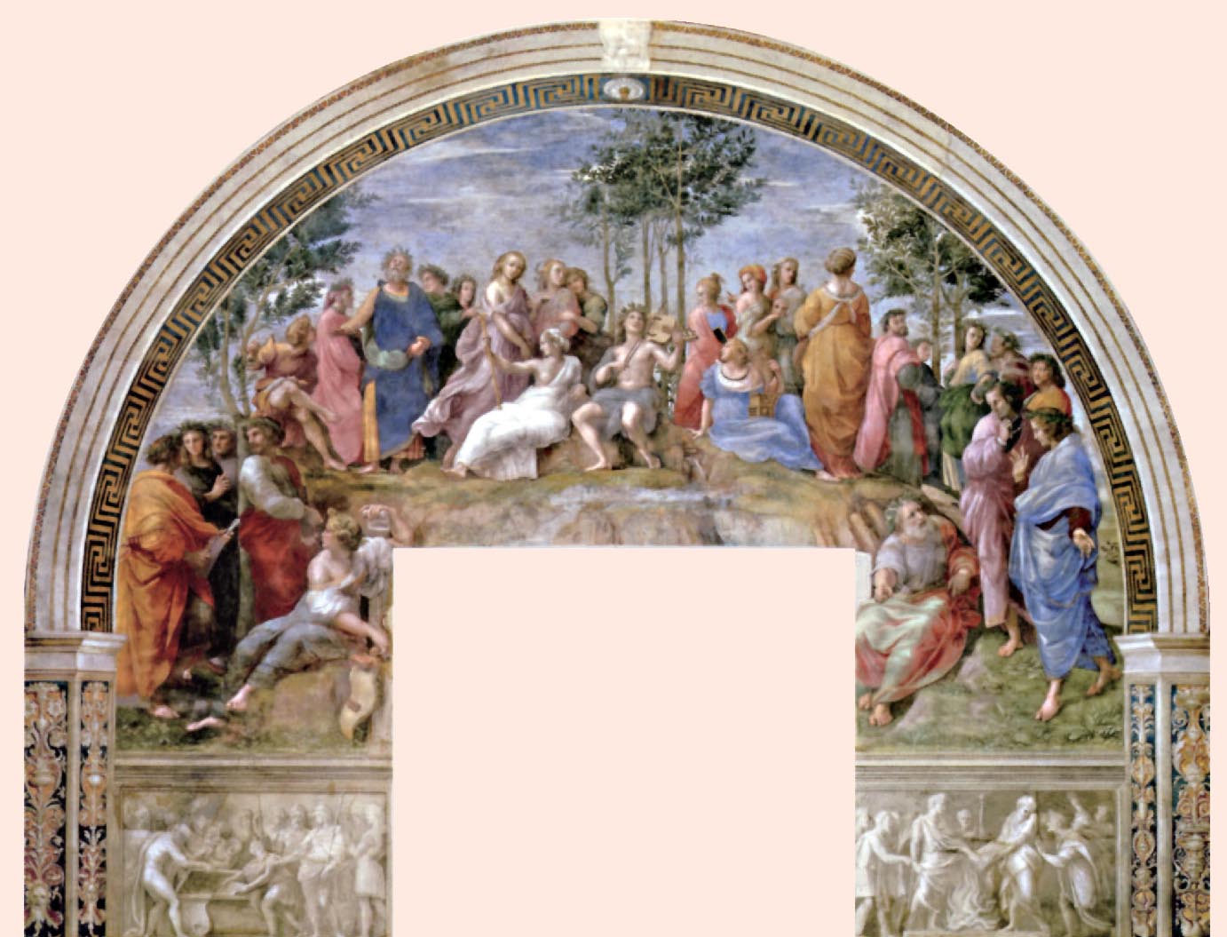 33.拉斐尔:《巴那斯》。梵谛冈教皇宫中的壁画之一(参考第五编第一章第一节)