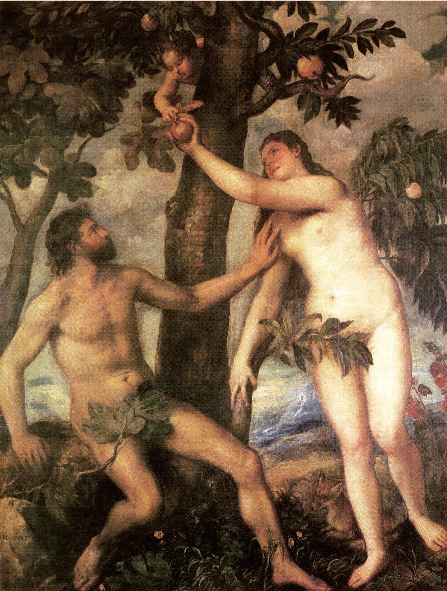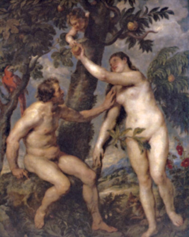 60.卢本斯:《亚当与夏娃》(临铁相原作)。临本与原作对比,可见鼎盛时期的尼德兰绘画与威尼斯派的区别(参考第三编第二章第三节后半段)