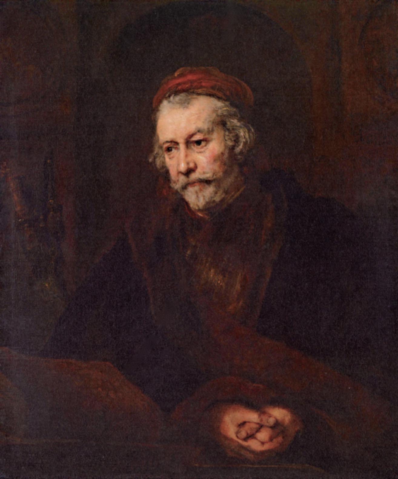 70.伦勃朗:《老人像》。伦勃朗经常以光暗的强烈对比描绘人间的苦难,抒写虔诚的宗教情绪。他所表现的痛苦、郁闷、凄怆,最接近现代人的心情;他的慈悲使他成为最富于人情味的画家(尚有其他作品见91、92图)