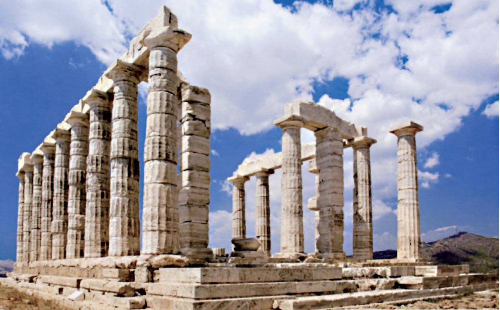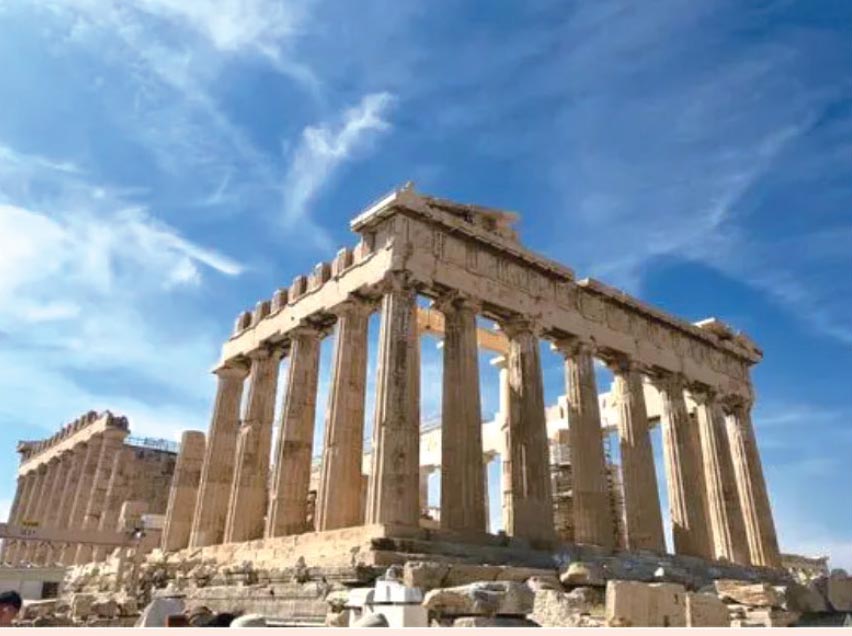 72.雅典卫城上的巴德农神庙,建于公元前四四七至前四三二年间。长六九·五一公尺,宽三〇·八六公尺。一六八七年土耳其人作为火药库,被威尼斯舰队的炮弹击中炸毁