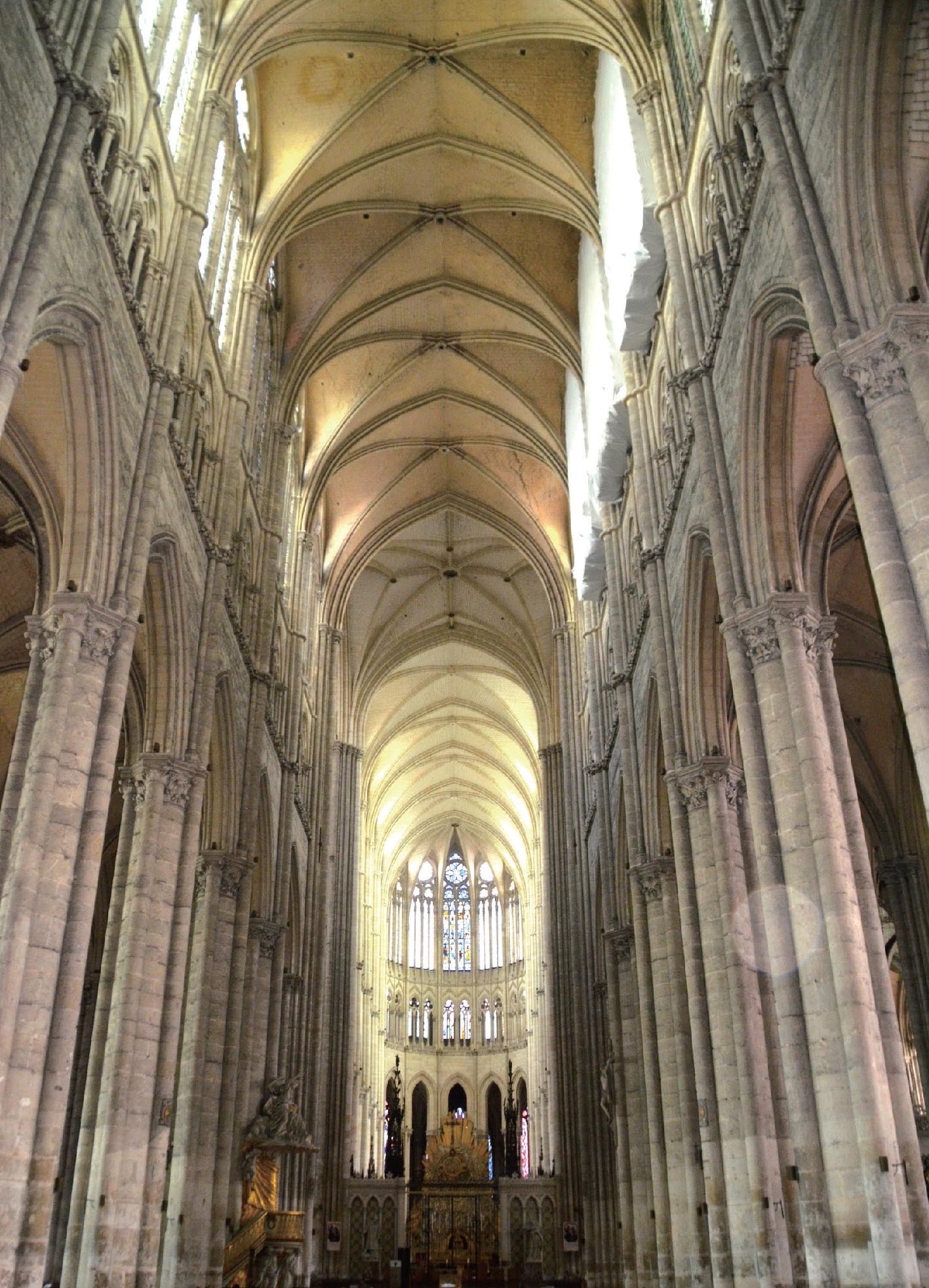 9.亚眠安大教堂:正堂,尖弓形穹窿与大量的支柱为哥特式建筑的主要特征