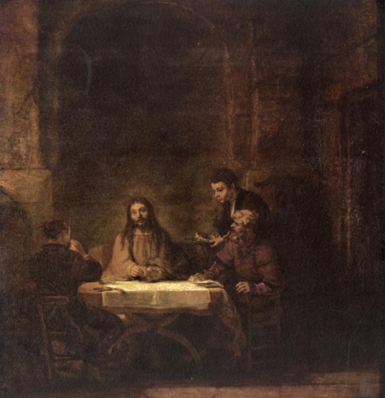 92.伦勃朗:《埃玛于斯的一餐》。图90至92三幅作品的比较,参考第五编第一章第一节