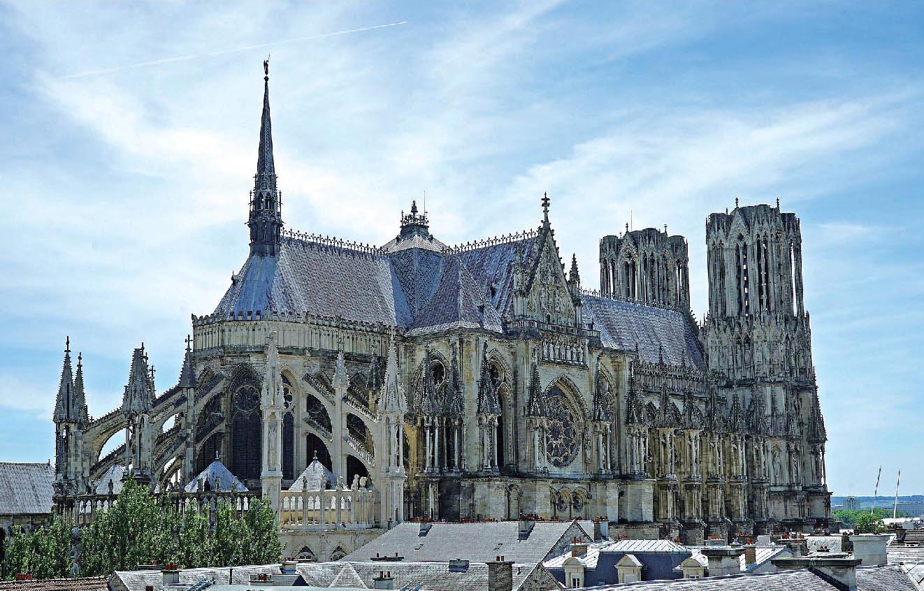11.兰斯大教堂:外扶壁及其拱梁。主要建筑窗多墙少非有外扶壁支持不可