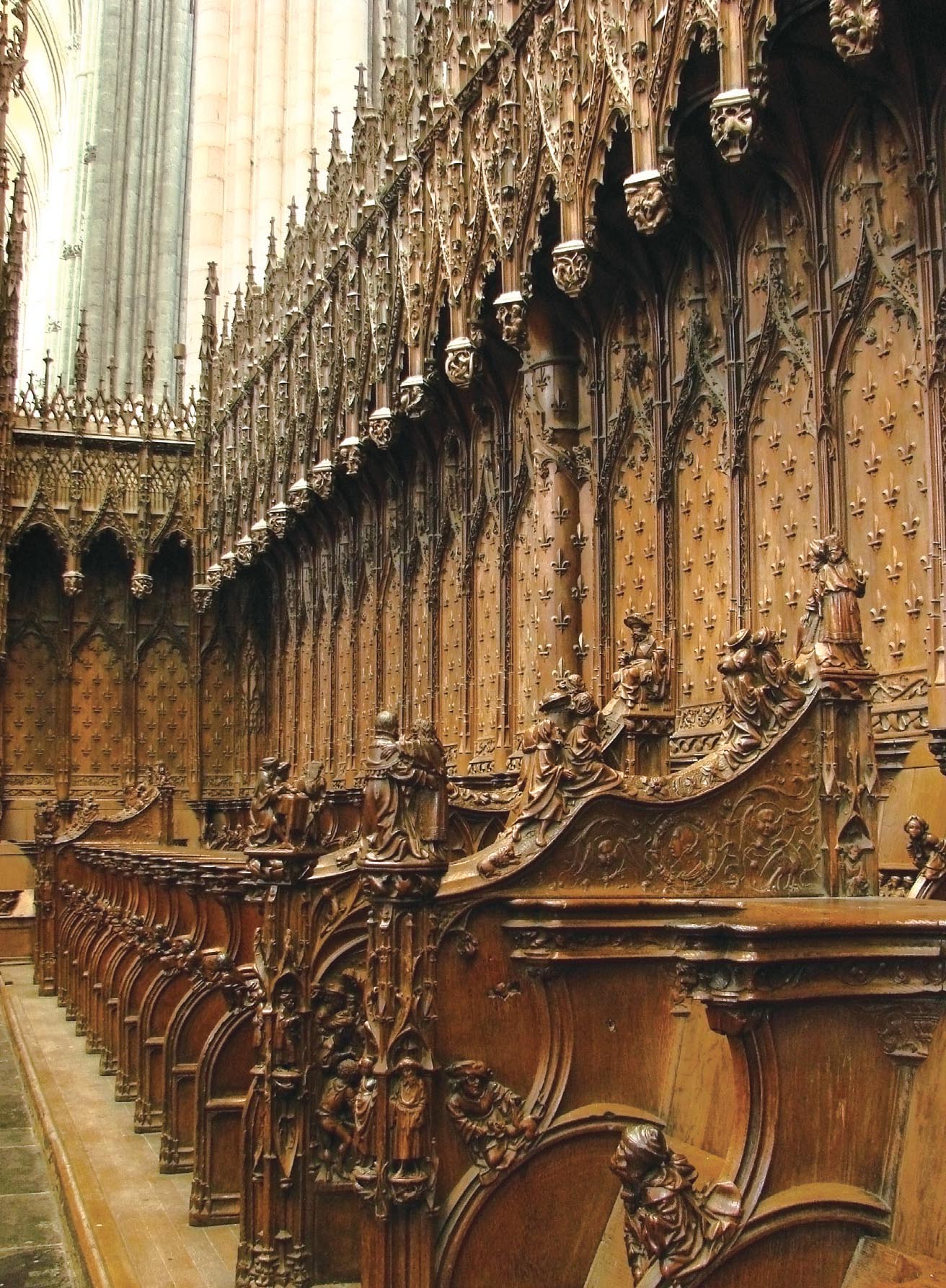 13.亚眠安大教堂:唱诗班席。细巧繁琐之雕刻原为哥特式教堂所常见,此处所用格式称为“火舌式”。图9至13参考第一编第二章第六节