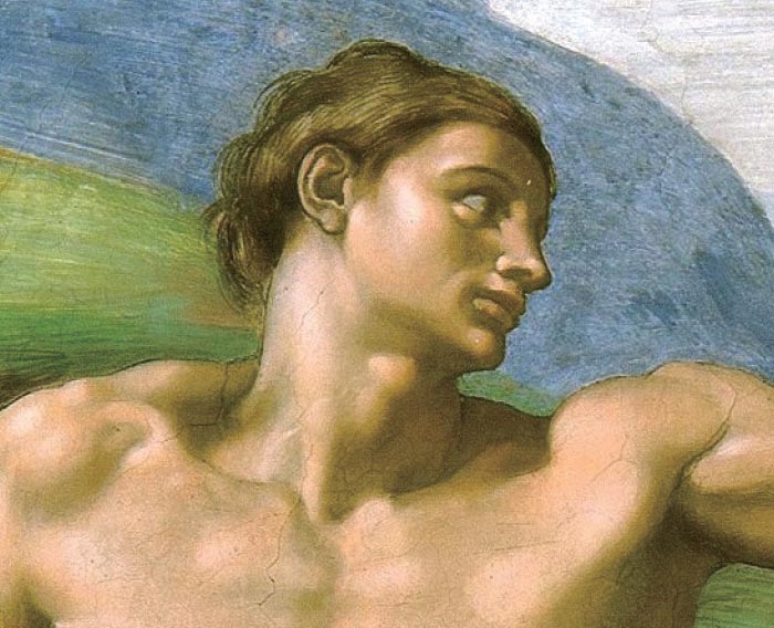 2.米开朗琪罗:《上帝创造人》局部,亚当头部,西克施庭教堂天顶画之一