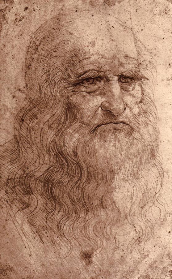 28.雷奥那多·达·芬奇:《自画像》。达·芬奇是绘画史上结合完美的技术与深邃的哲理最成功的画家。他表现的主要是智慧与怀疑精神