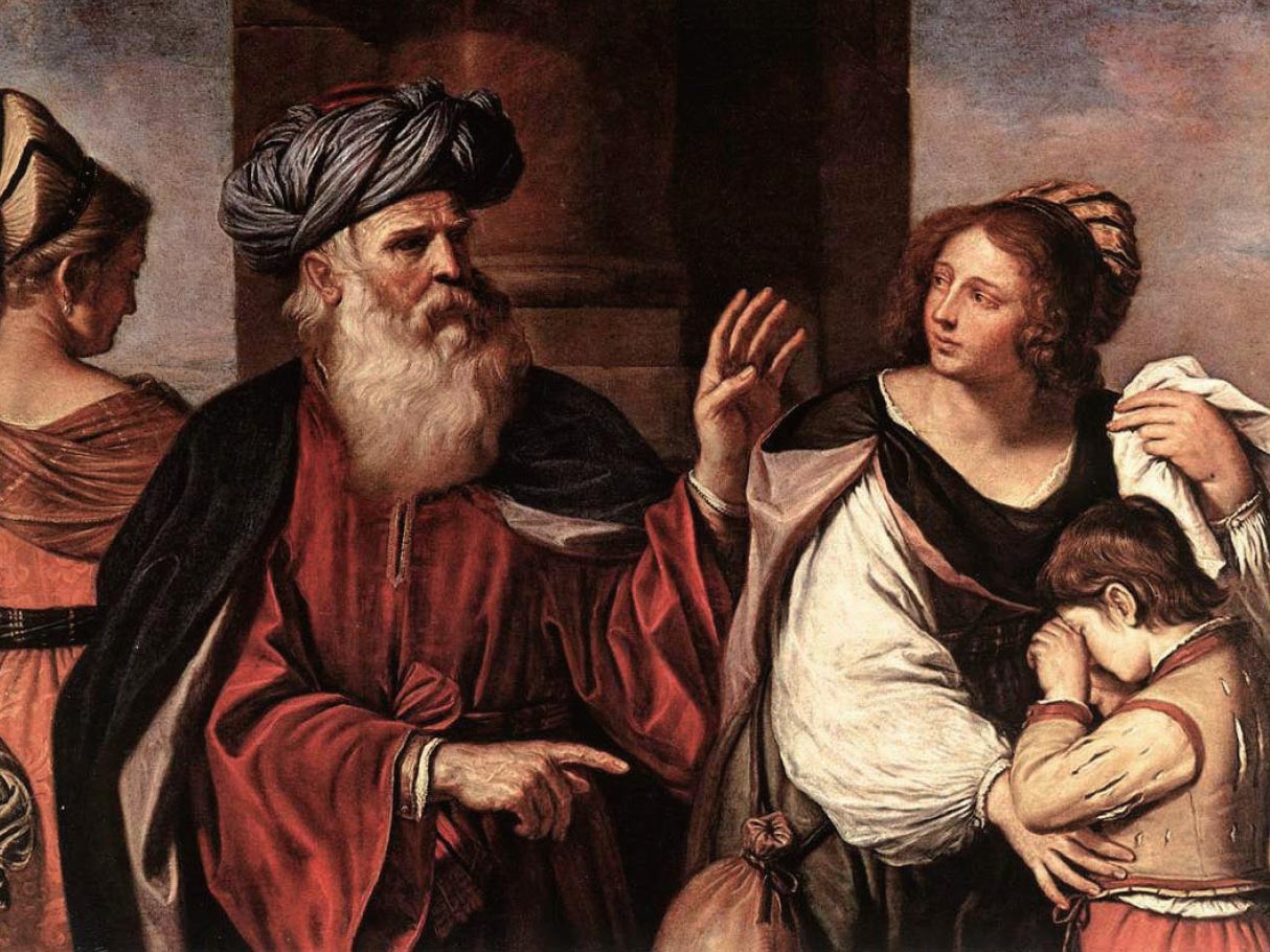43.葛尔钦:《亚伯拉罕驱逐夏甲》。图40至43属于意大利文艺复兴的衰退期,徒以技巧、文学气息及戏剧情调取胜