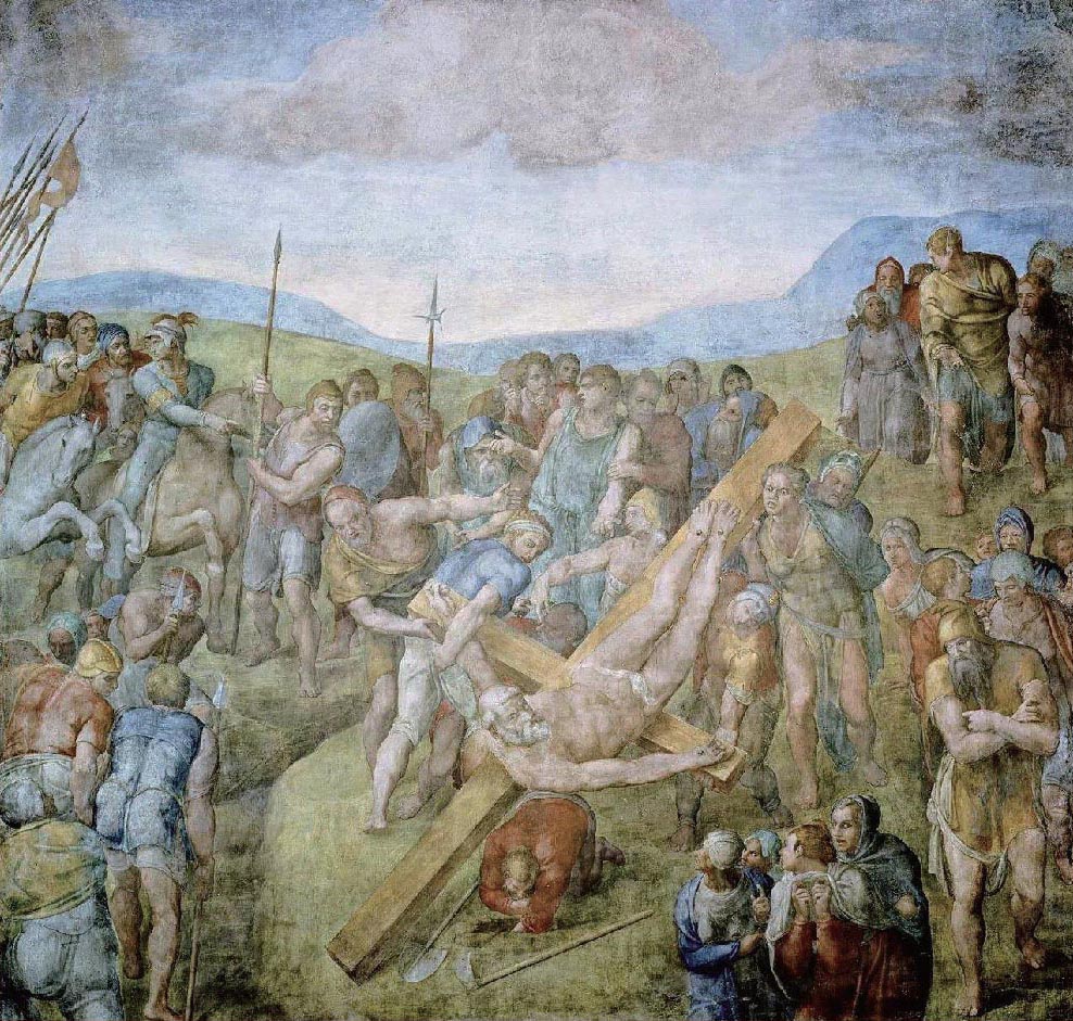 5.米开朗琪罗:《圣·彼得上十字架》,保里纳教堂壁画