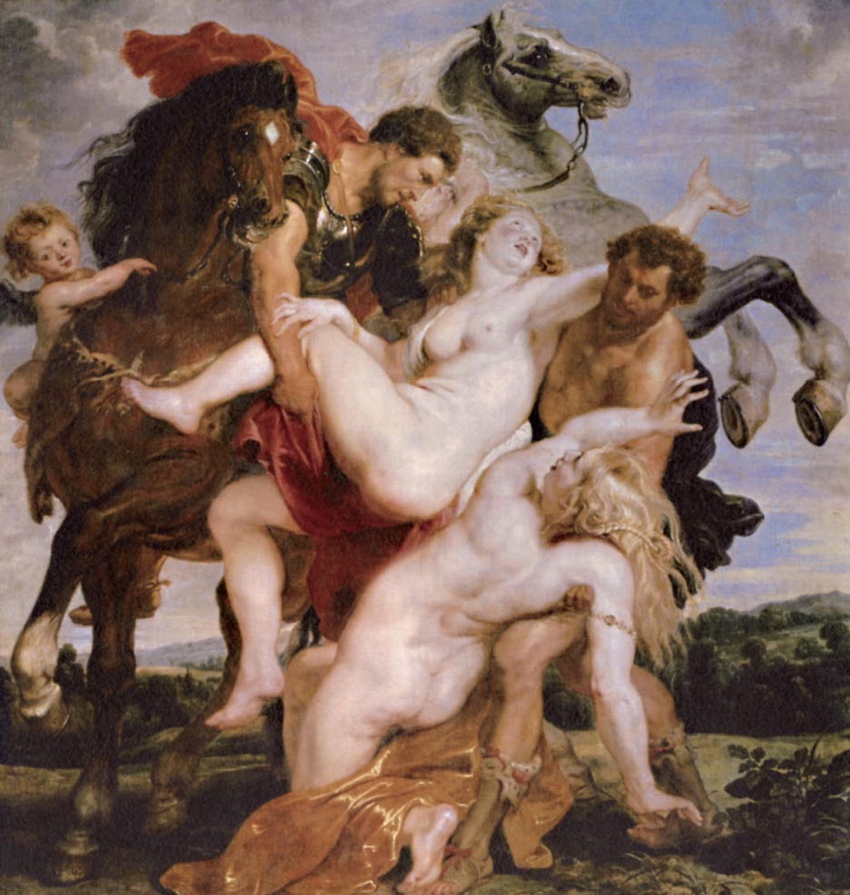 55.卢本斯:《罗西普的女儿被劫》。卢本斯所歌颂的是顽强充沛的精力,粗豪的快乐,追求刺激的本能