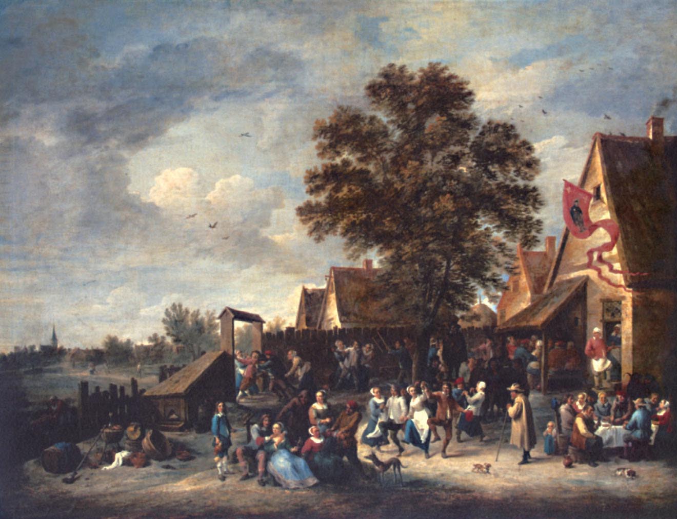 61.大卫·丹尼埃:《乡村节会》。图55至61属于尼德兰绘画的第二高潮,相当于尼德兰历史的第三期(十七世纪前半叶)(参考第三编第二章第三节)