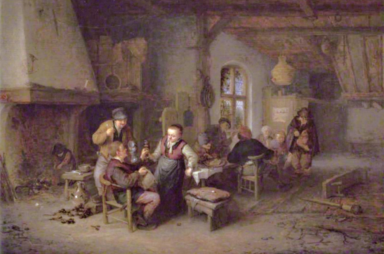 63.奥斯塔特:《小酒店》。家庭小景与日常生活在荷兰画派中愈来愈占重要地位