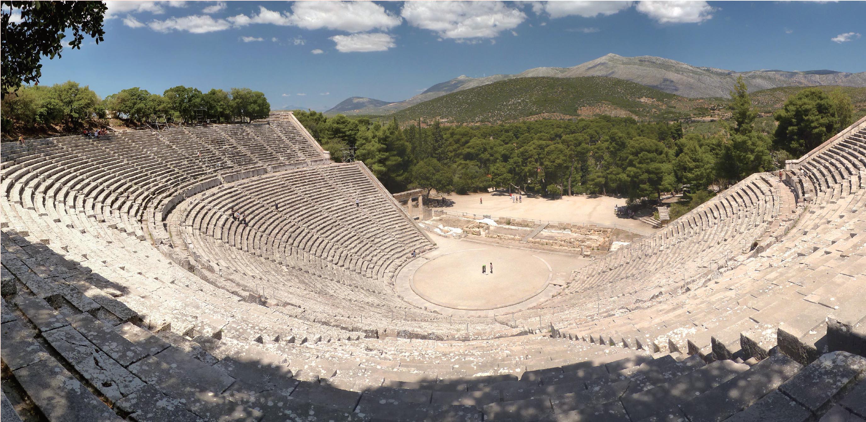 75.埃披道拉斯的露天剧场;面临爱琴海;建于公元前三二五年,圆形舞台直径六六·五公尺,看台占圆周的五分之三(参考第四编第二章第一节)