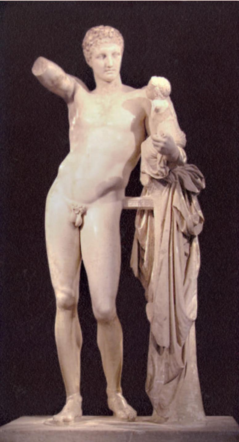 83.普拉克西泰利斯,《赫美斯神像》,公元前四世纪中叶。普拉克西泰利斯的作品特别表现一种宁静与慵懒的梦境
