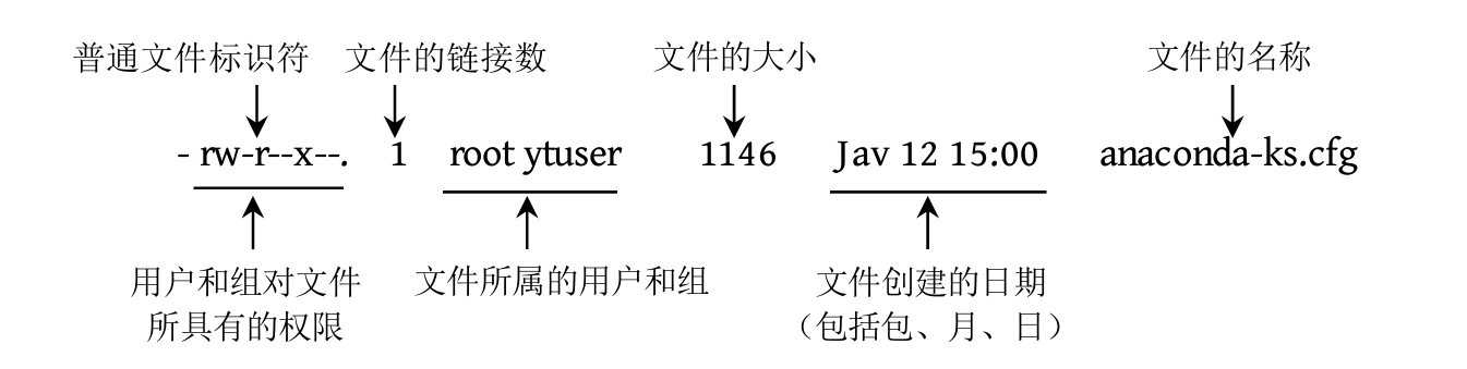 其中,文件中的“rw-r--x--”和“root ytuser”是接下来重点介绍的内容。