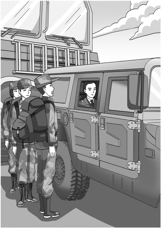 说完,剑齿虎来到一辆导弹发射车旁。这辆车太高了,他站在地上要使劲地仰起头,还要踮着脚尖,才能看到驾驶室里的人。虽然剑齿虎只看到了司机的侧脸,但却看清了他的军衔——上士。