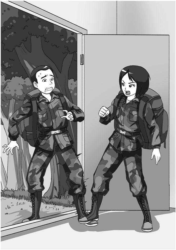 “你,你们——”霹雳虎被三位女兵戏弄得无言以对。不过,他并不死心,一直跟在三位女兵的后面,寻找着反击的机会。直到他的一只脚被人狠狠地踩住,才发出一声惨叫并停下来。