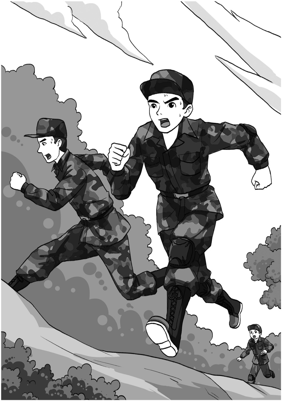 一声令下,炮兵二连的官兵争先恐后地向野战营地外跑去。T小队的少年们第一次参加炮兵二连的早训还没有摸到门道,根本不知道要冲上哪个山头,所以只能跟着大家一起往前跑。