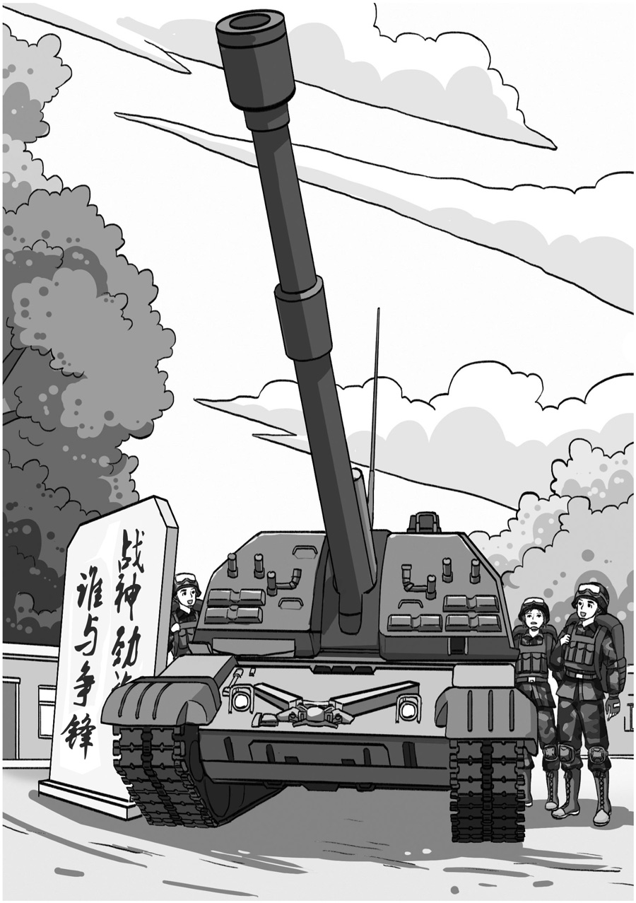 在这句标语旁,有一门155毫米口径的自行火炮,长长的炮管指向天空,令人望而生畏。这门霸气的大炮仿佛在向进入这里的人们宣告——这里是“战神”部队。