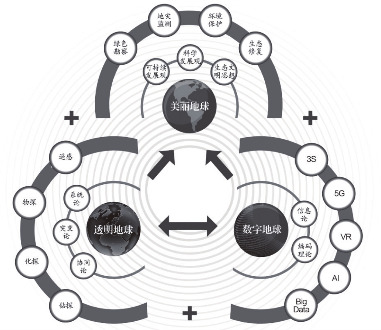 地勘行业的“三个地球”思想可以说是集成了人类对地球认识与探索的最新成果。当代科学突飞猛进,知识大爆炸,技术大革命,尤其是信息论、控制论、系统论、计算机理论以及网络技术、大数据技术、AI、虚拟现实技术等的发展与利用,让人类对地球的认知与探索达到前所未有的高度。