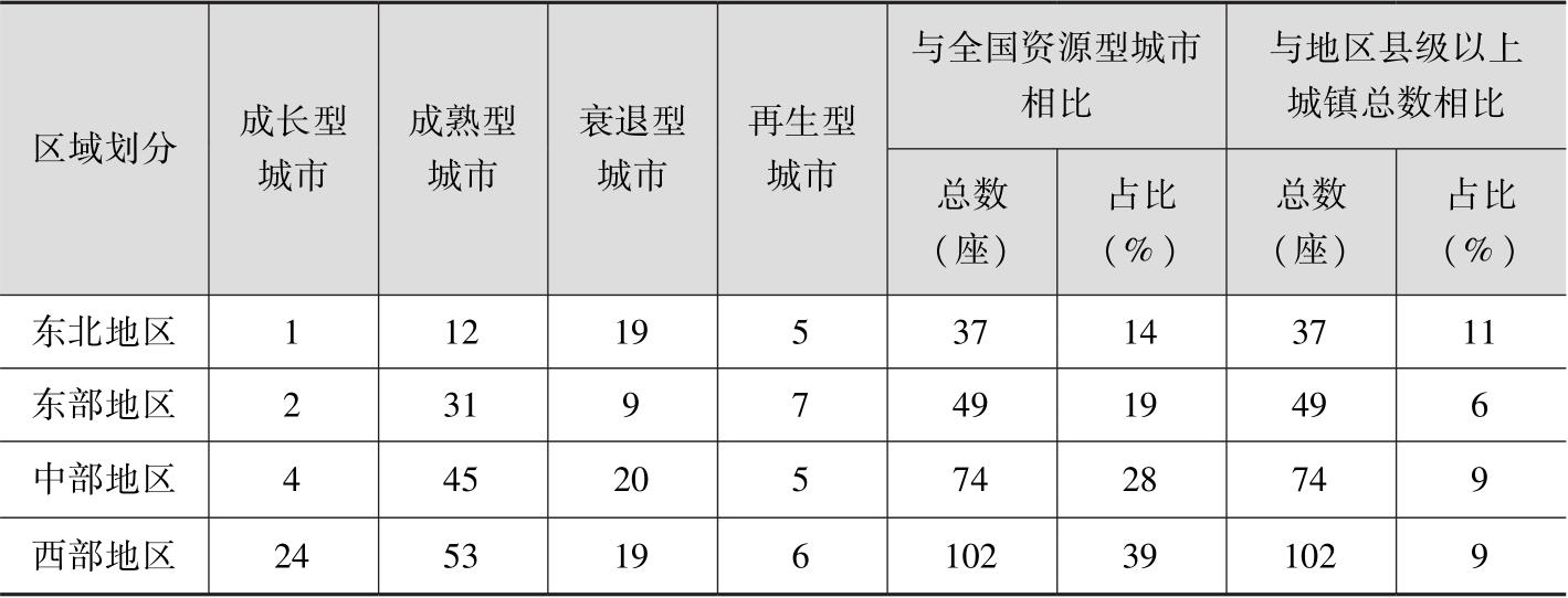 资料来源:根据《全国资源型城市可持续发展规划(2013—2020年)》整理所得。