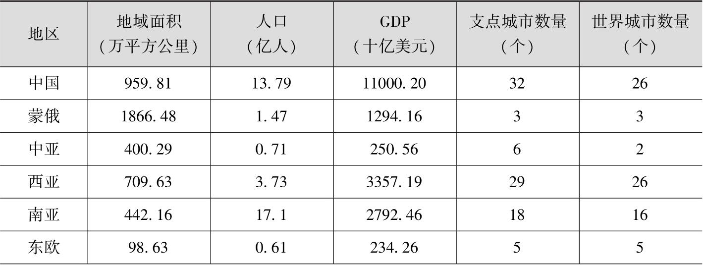 表6 丝绸之路经济带沿线各地区的支点城市分布情况