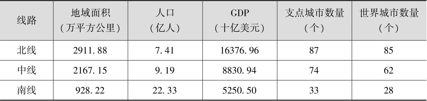 (一)三条线路的支点城市数量差异